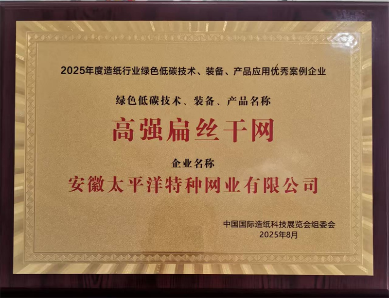 公司被中國國際造紙科技展覽會(huì)組委會(huì)評(píng)為“2025年度造紙行業(yè)綠色低碳技術(shù)、裝備、產(chǎn)品應(yīng)用優(yōu)秀案例企業(yè)”,公司“高強(qiáng)扁絲干網(wǎng)”產(chǎn)品獲得廣泛認(rèn)可并被評(píng)為“綠色低碳技術(shù)、裝備、產(chǎn)品”。